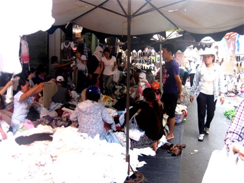 trên dưới 50 sạp hàng từ áo quần, đến giỏ xách, giày dép, vật dụng gia