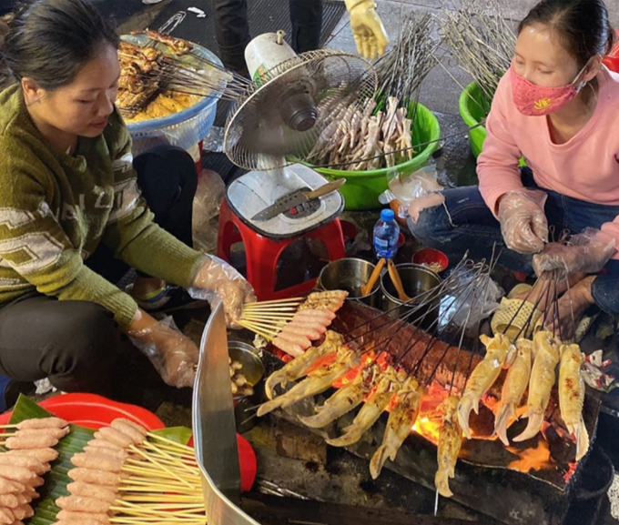 Tối mùa đông mưa phùn, còn gì tuyệt vời hơn khi quây quần bên những quán nướng vỉa hè phố cổ, vừa sưởi ấm vừa hít hà mùi thơm nức mũi từ các loại đồ ăn được nướng tại chỗ. Cô nàng và 2 người bạn gọi 10 chân gà, 5 cánh gà và 3 bánh mì nướng cho bữa ăn khuya no nê.
