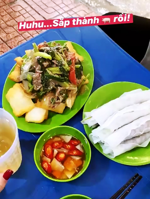 Chỉ trong hơn một ngày, 'bà mẹ hai con' Diệp Lâm Anh đã có lịch trình ăn uống kín mít từ sáng đến khuya với 7 đặc sản Hà thành.