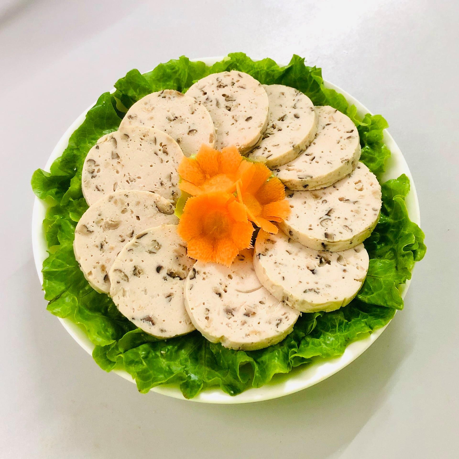 - Trộn nấm với hỗ hợp giò trên. Gói giò bằng lá chuối hoặc trải 1 lượt giấy bạc và 1 lượt giấy nến vào bên trong rồi gói giò lại lưu ý không gói chặt vì khi hấp sẽ nở.