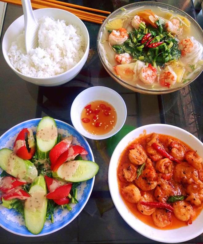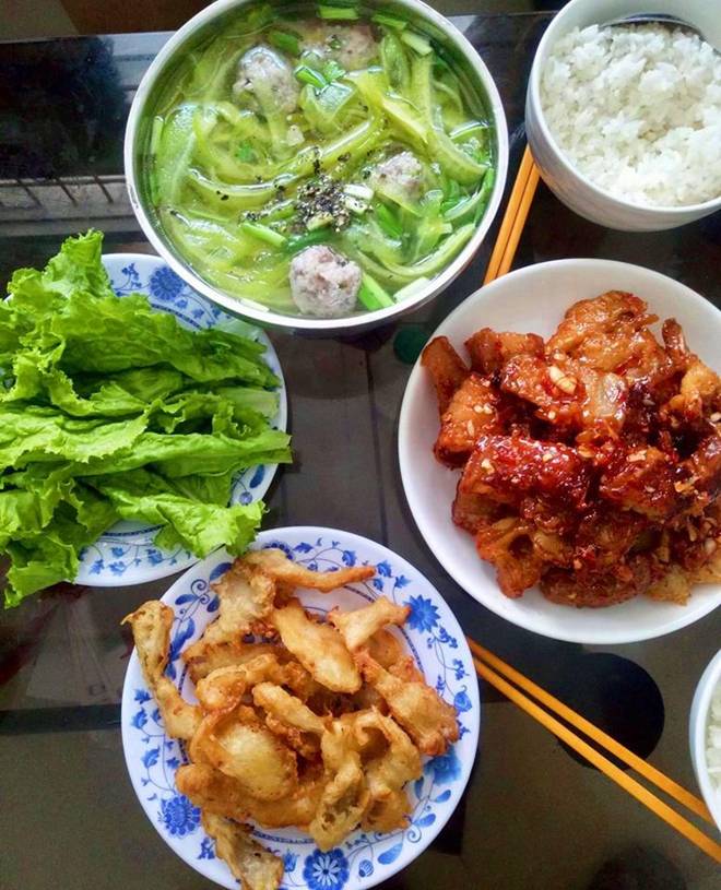 Bữa cơm nào cũng được cô vợ trẻ Thùy Trang (22 tuổi, Sài Gòn) nấu ăn vô cùng tươm tất, đầy đặn khiến dân mạng hết lời khen ngợi.