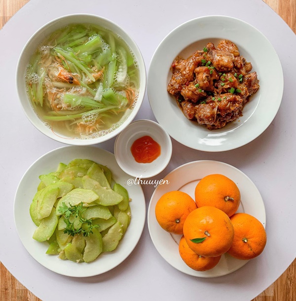 Bí kíp vào bếp của Uyên chính là cô bạn luôn vui vẻ và cảm thấy hạnh phúc khi chính tay nấu những món ăn ngon cho các thành viên thân yêu của gia đình. Nhiều người còn dành lời khen cho việc trình bày và chụp ảnh đẹp của Thu Uyên. Món ăn ngon đã đành nhưng cách trình bày còn giúp món ăn trở nên hấp dẫn hơn. Dưới đây là tên từng món Thu Uyên chia sẻ về thực đơn mâm cơm Việt, hi vọng sẽ giúp chị em có thêm gợi ý về món ngon mỗi ngày cho bữa cơm gia đình.