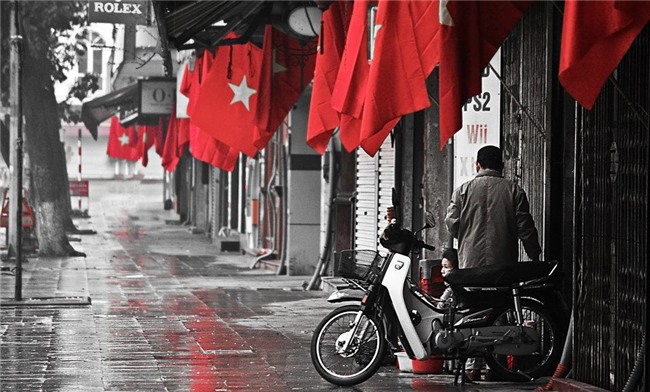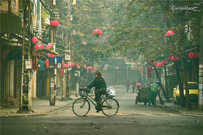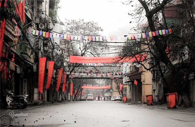 Hà Nội ồn ào, náo nhiệt thường ngày bỗng lặng im như ngủ quên, là dịp duy nhất trong năm mà ta có thể nhìn ngắm Hà Nội thật kỹ. Những con phố nhỏ nhắn và ám màu thời gian. Những cửa hàng thường ngày đầy ắp sắc màu và tấp nập người ra kẻ vào giờ cũng đóng kín. Mảng tường vàng ố in hằn những ký ức về một ngày cũ xưa nào đó.