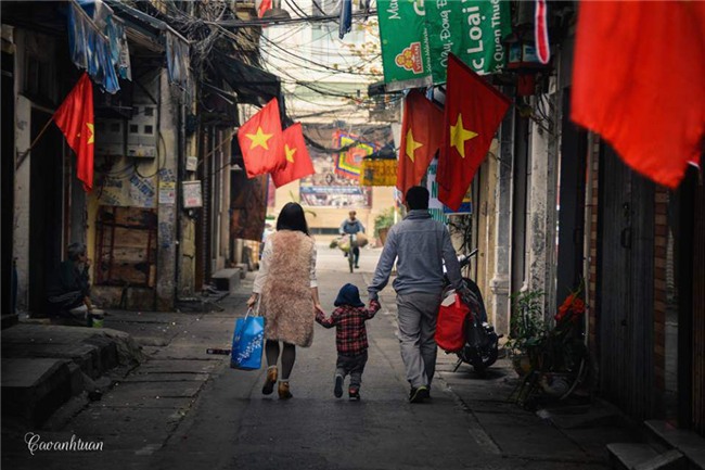 Một gia đình nắm tay nhau trên ngõ nhỏ. (Ảnh: Cao Anh Tuấn)