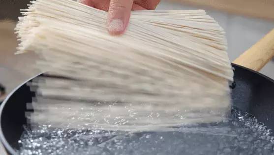 Bước 2: Đun sôi một nồi nước, cho mì khô vào luộc chín sau đó vớt mì ra tô nước lạnh để một lát.