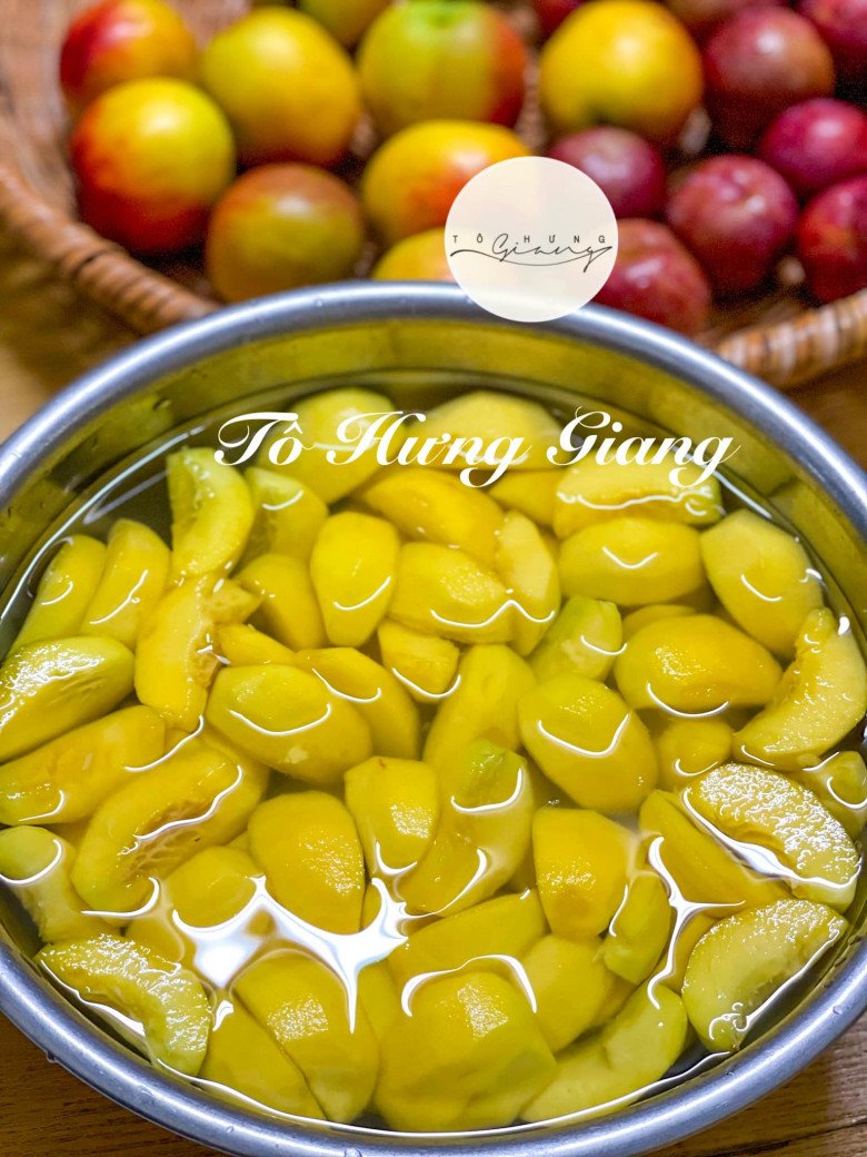 Lưu ý: Trường hợp bạn không có đường thốt nốt thì có thể áp dụng cách làm đào ngâm bằng đường trắng nhưng phải thắng đường thành màu caramen ngâm mới ngon và thơm.