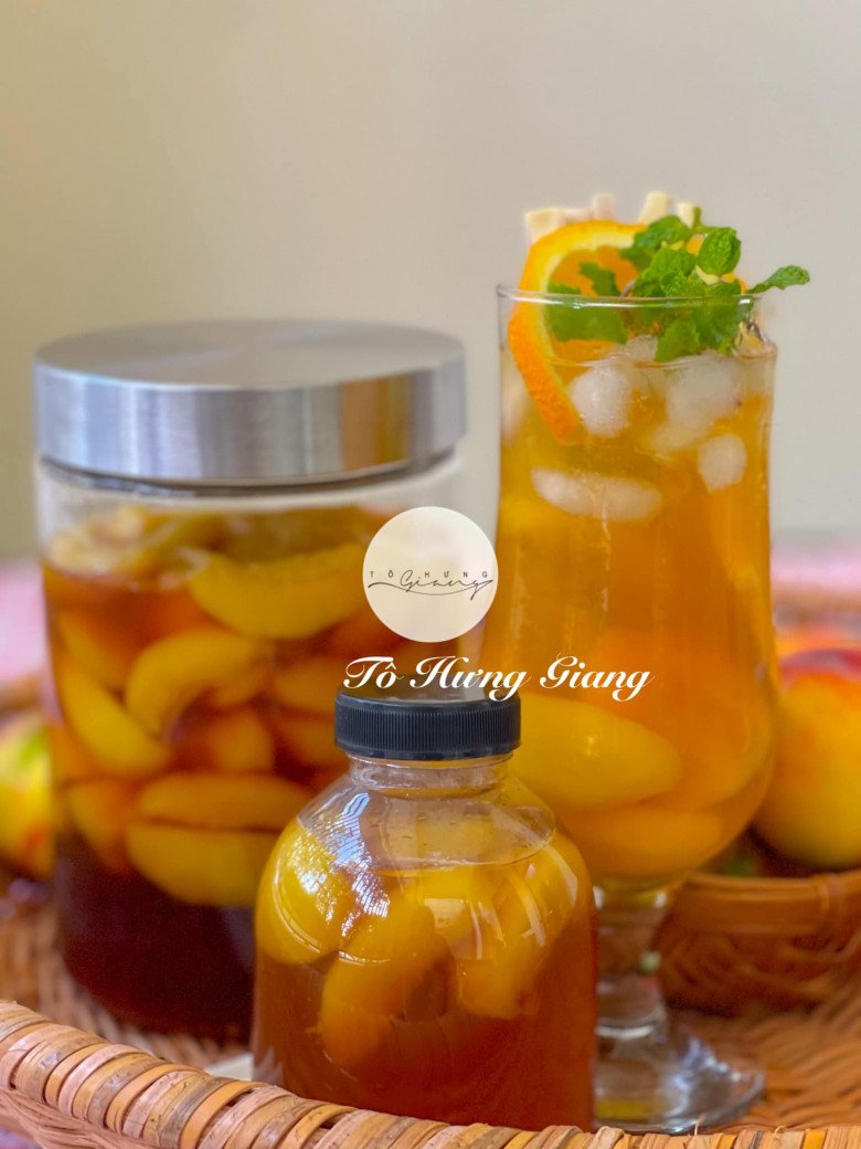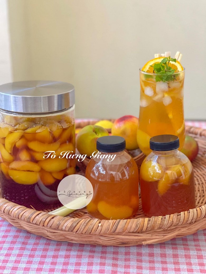 Thay vì ra hàng quán, ngay tại nhà bạn cũng có thể tự ngâm đào để làm trà đào cam sả thưởng thức. Nếu thích, hãy tham khảo cách làm đào ngâm sao cho giòn ngọt để pha trà đào cam sả hấp dẫn dưới đây của hot mom Tô Hưng Giang (Hà Nội) nhé, đảm bảo bạn sẽ thức uống ưng ý cho già đình trong mùa hè này.