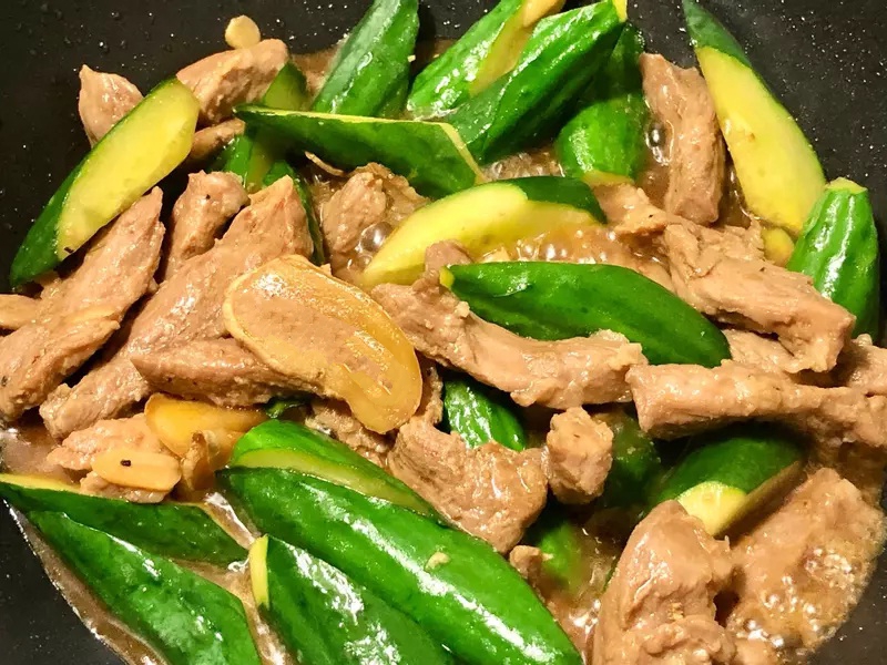 Thịt xào dưa chuột là một món ăn ngon miệng, thời gian chế biến cực ngắn nên thích hợp cho những ngày bận rộn. Thịt mềm ngọt thấm đều gia vị, dưa chuột giòn giòn mát lành rất đưa cơm. Đây mặc dù là một món xào nhưng lại sử dụng rất ít dầu ăn nên không tạo cảm giác ngán ngấy khi ăn.