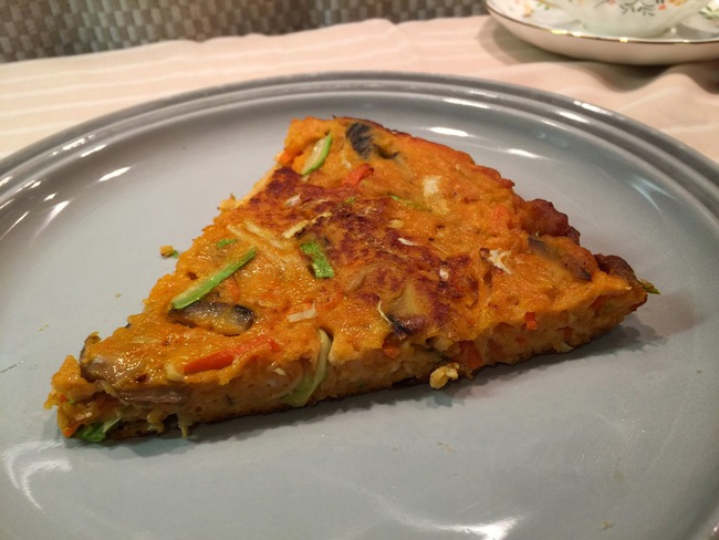 Giờ thì dùng kéo cắt chiếc pizza đậu hũ, rau củ này thành miếng nhỏ là có thể thưởng thức được rồi!