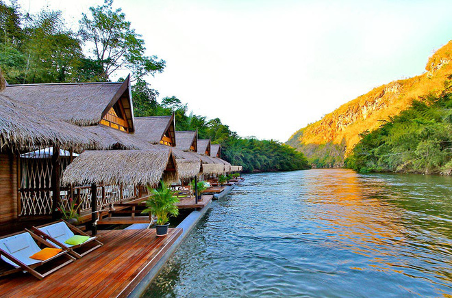 Nơi đây được xây dựng từ năm 1976 và được cải tạo theo phong cách hiện đại, thân thiện. Nằm cách Bangkok 2 tiếng đi xe, những căn phòng dựng bằng tre này nối nhau thành một chuỗi dài trên sông Kwai.