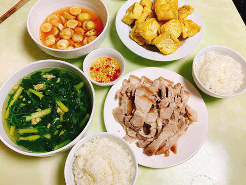 Mâm cơm đơn giản nhưng trông khá ngon lành.