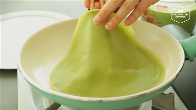 bánh crepe trà xanh có cách thực hiện đơn giản. Khi ăn lớp bánh không