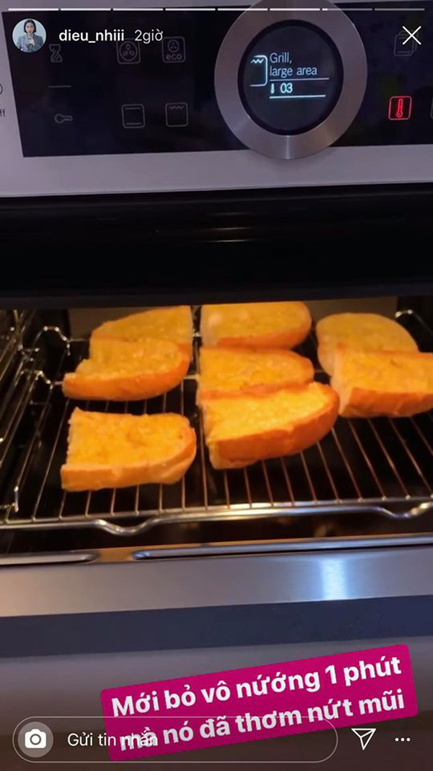 Diệu Nhi cũng đu trend với món "bánh mì bơ tỏi" đang được dân tình rần rần