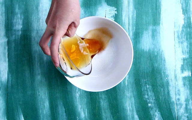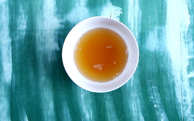 - Bước 2: Hòa tan 6 muỗng canh nước mắm, 5 muỗng canh đường trắng, 4 muỗng canh nước lọc, khuấy đều đến khi đường tan hết.