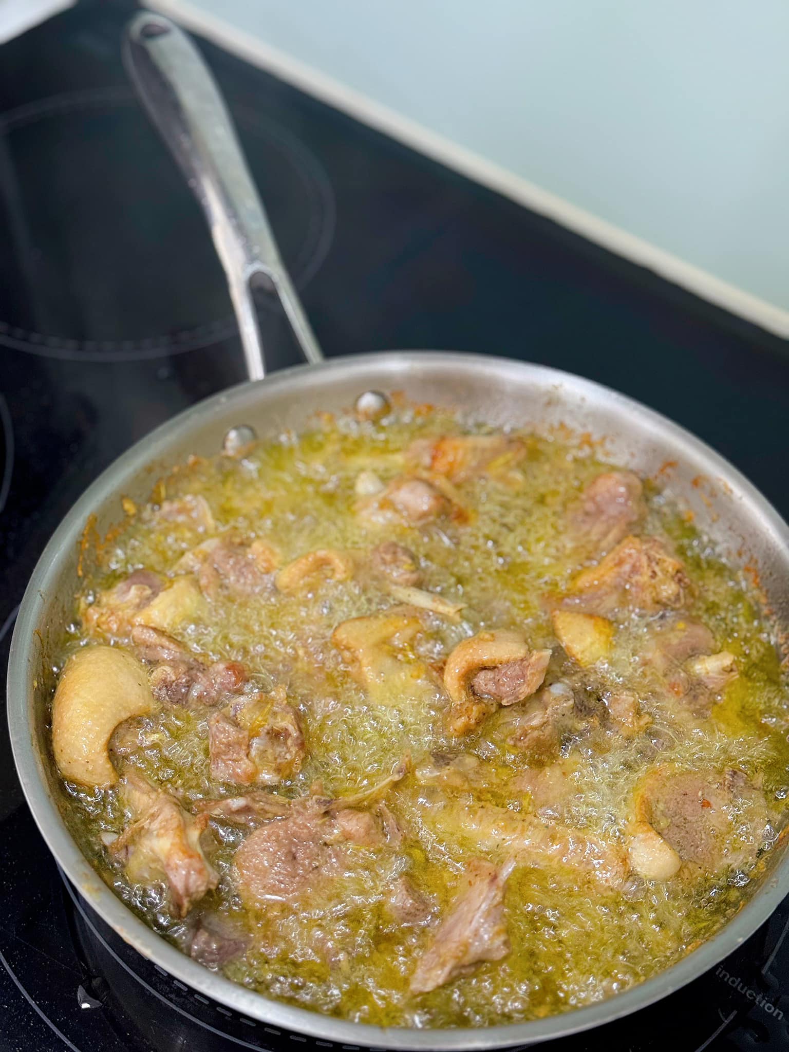 Bước 5: Cho vịt vào chao ngập dầu hoặc chiên không dầu nếu ngại dầu mỡ. Nhưng món này chao ngập dầu sẽ ngon hơn, đúng điệu.