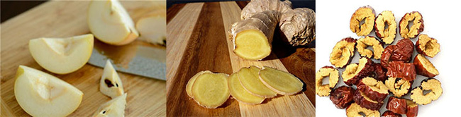 1 quả lê, 1 củ gừng, 2 thanh quế