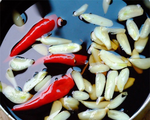 - Vị mặn nhạt của mỗi loại nước mắm có khác nhau nên khi pha hỗn hợp này bạn có thể điều chỉnh chút xíu sao cho vừa miệng. Dùng một nửa số tỏi và ớt bạn chuẩn bị, tỏi= thái lát, ớt đập hơi dập để đun cùng với mắm, một nửa còn lại để nguyên để cho vào khi ngâm.