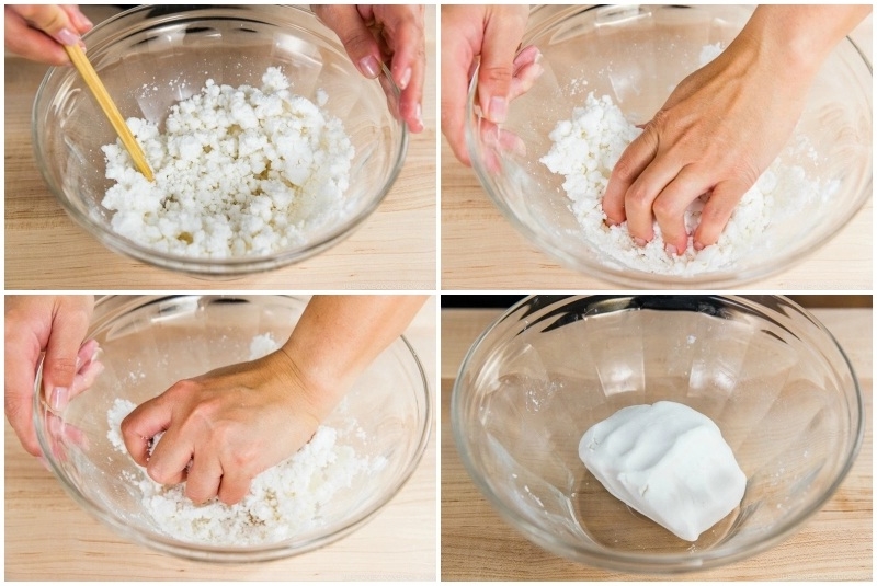 Bước 2: Dùng tay nhào bột thành một khối dẻo mịn không dính tay.