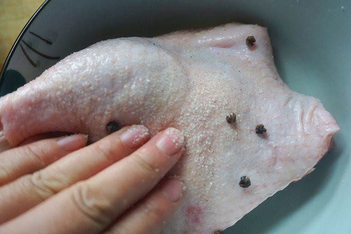 Cho muối thoa bóp đều lên thân vịt.