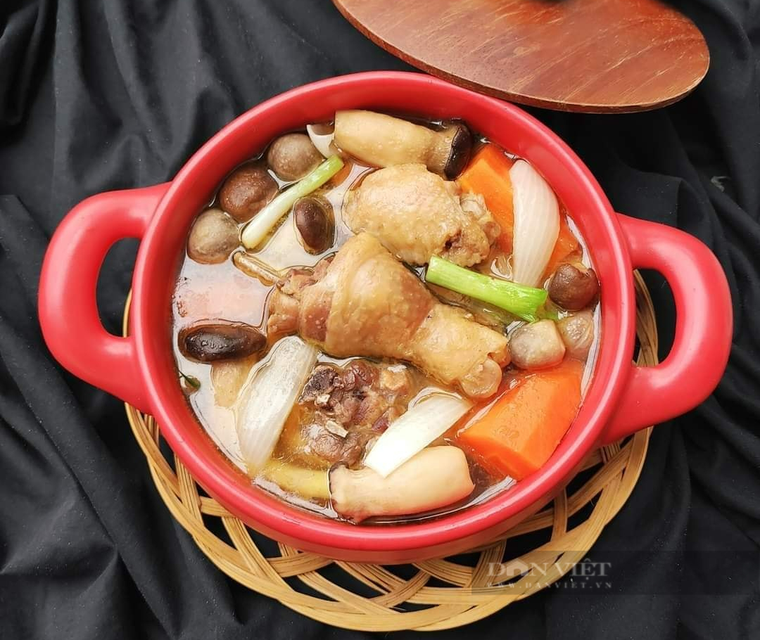 Cách làm gà om nấm nước dừa: Gà om nấm có vị thơm ngon