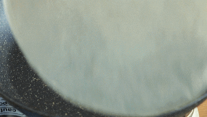 Bước 4: Cho bánh tortilla ngũ cốc đã làm sẵn vào chảo rồi đun trên lửa nhỏ. Đối với lớp vỏ này, tốt nhất bạn nên chuẩn bị sẵn bằng cách làm từ ngũ cốc thô (hoặc bột mì nguyên cám) hay mua tại các siêu thị; sàn thương mại điện tử trước để tiết kiệm thời gian. Chiên vỏ bánh trên lửa nhỏ cho đến khi thấy nổ lác đác những hạt khí nhỏ thì có thể lấy ra, để lên đĩa.