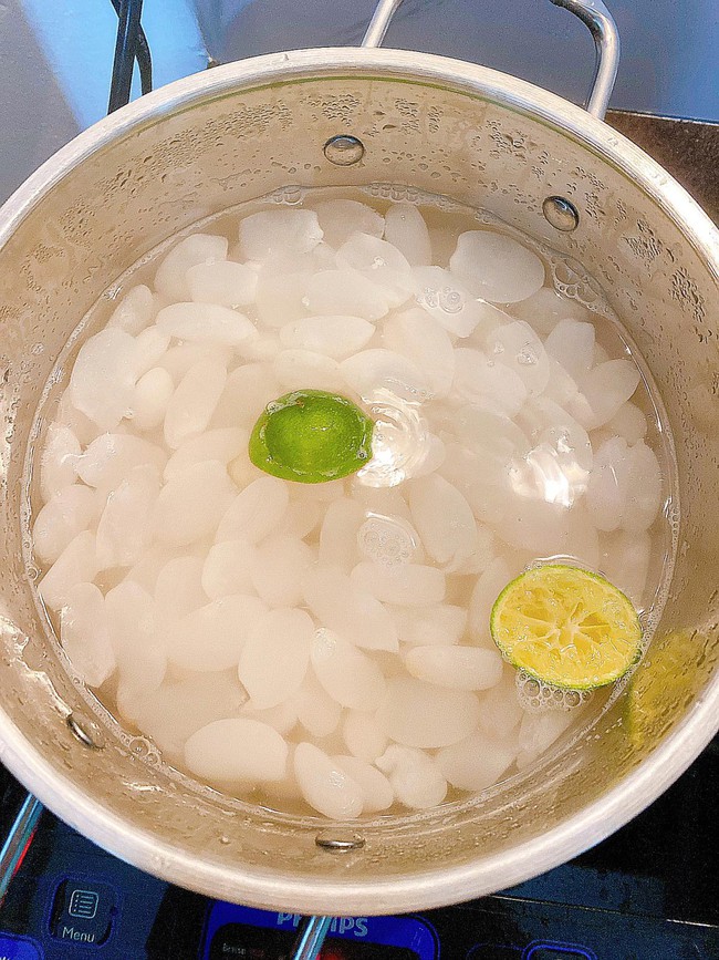 Với hạt đác, bạn rửa 2-3 lần với nước rồi vắt nước cốt chanh vào, bóp nhẹ để hạt đác hết chất nhớt và thơm hơn. Sau đó, bạn cho hạt đác vào nồi, đổ nước ngập xâm xấp, thêm cả vỏ chanh vào và luộc khoảng 2-3 phút.