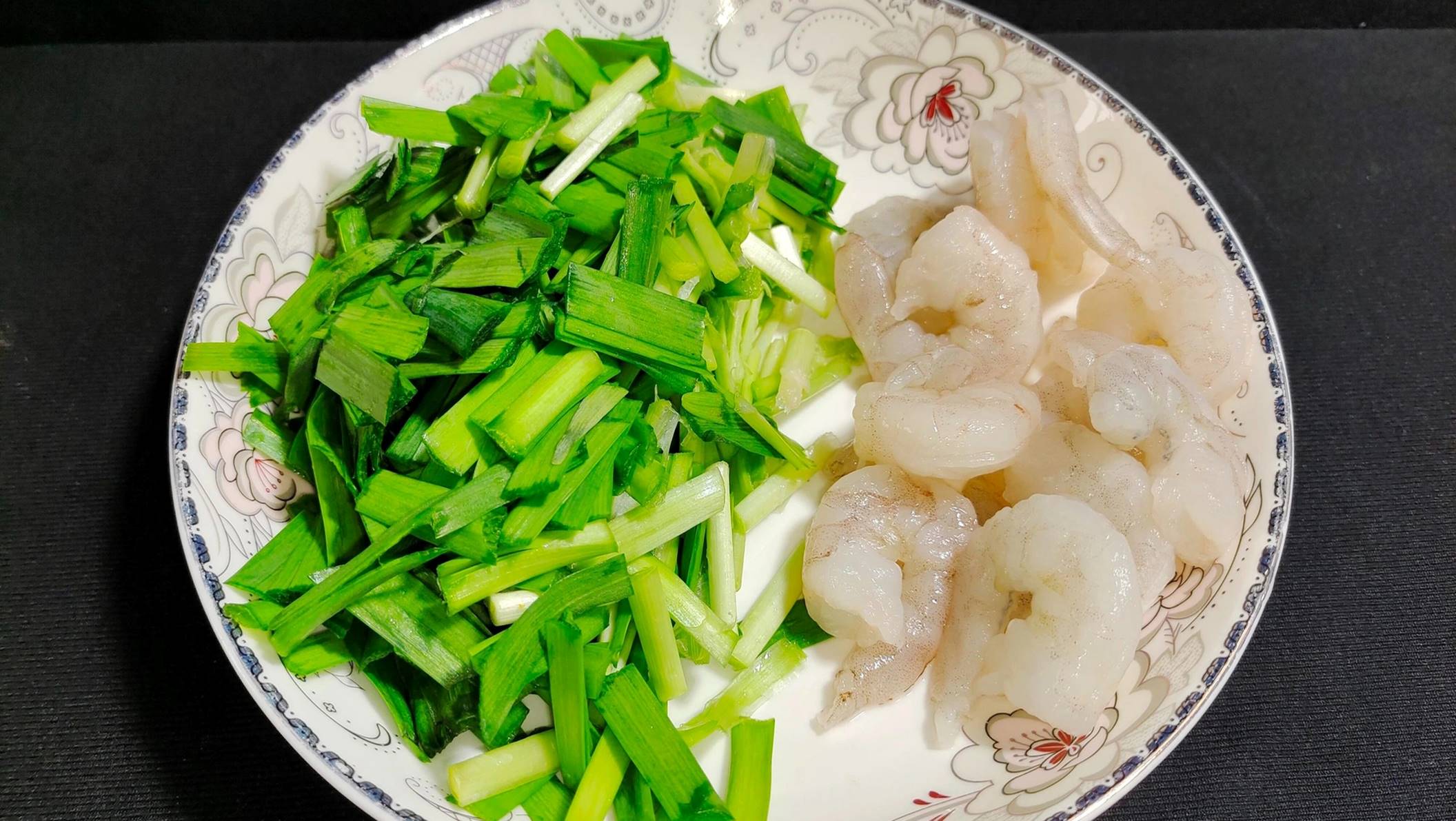 - Chuẩn bị một nắm nhỏ hẹ tươi, rửa sạch và cắt thành từng miếng nhỏ. Tôm tươi bóc vỏ, rạch lưng tôm lấy chỉ tôm ra rồi tách tôm làm đôi. Gừng tỏi băm nhỏ, ớt cắt khoanh nhỏ.