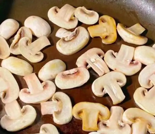 Bước 2: Nấm mỡ bạn rửa sạch rồi cắt thành lát và đặt sang một bên. Tiếp theo bạn đun nóng dầu trong chảo. Cho nấm vào xào đến khi dậy mùi thơm rồi thêm mướp vào, xào một lúc.