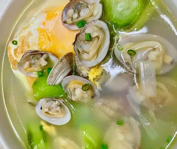 2. Canh mướp, trứng và ngao