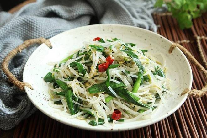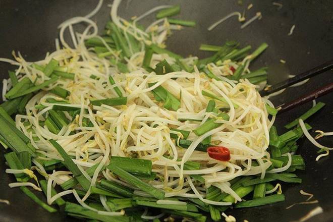 Giá đỗ và lá hẹ xào chung với nhau sẽ thành một món ăn đơn giản, thanh đạm, ngon miệng nhưng cực kỳ bổ dưỡng.