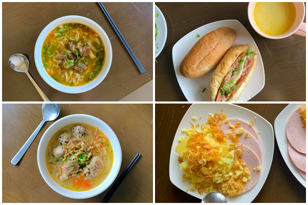 Phở bò sốt vang/ Bánh mỳ pate trứng xúc xích/ Bún sườn măng/ Xôi xéo