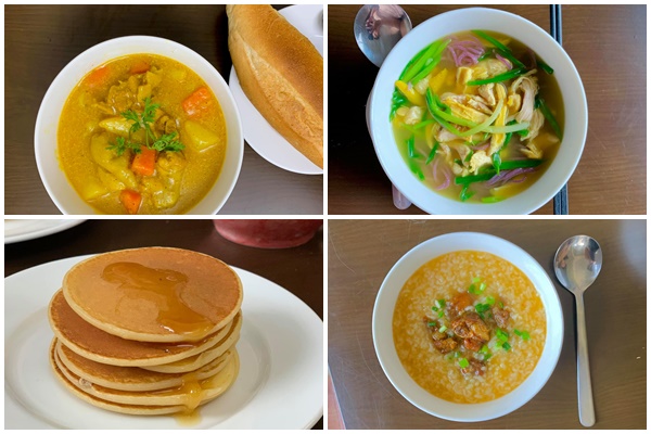 Bánh mỳ + cà ri gà/ Bún gà/ Bánh pancake/ Cháo sườn Đài Loan