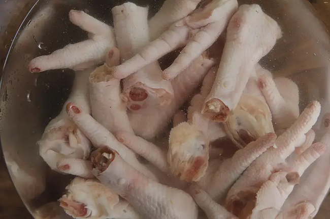 Chân gà mua về có thể bóp với nước rượu gừng để loại bỏ mùi hôi.