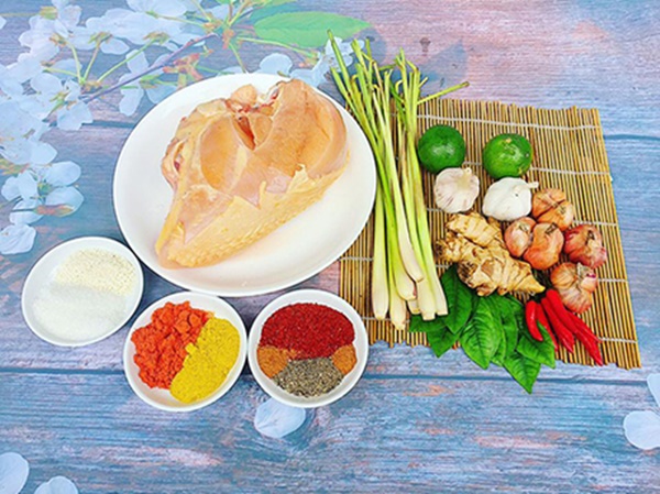 - Thịt ức gà: 450g - Gừng: 1 củ - Hành tím - Lá chanh - Tỏi - Ớt trái - Sả |
