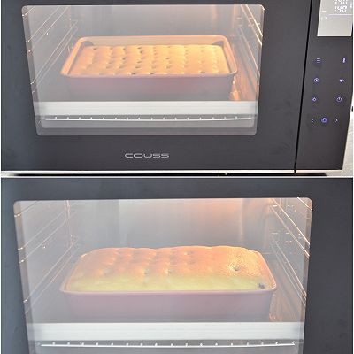 Làm nóng lò nướng ở 140 độ C trước 15 phút. Cho khay bánh vào lò, nướng bánh trong khoảng 70 phút là bánh chín. Lưu ý nướng bánh 2 lửa cả lửa trên và lửa dưới.