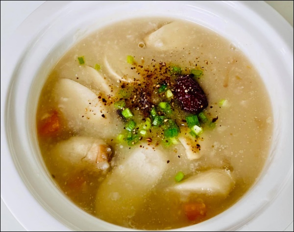Cháo nấm không chỉ ngon mà còn được nam MC trình bày rất đẹp mắt.