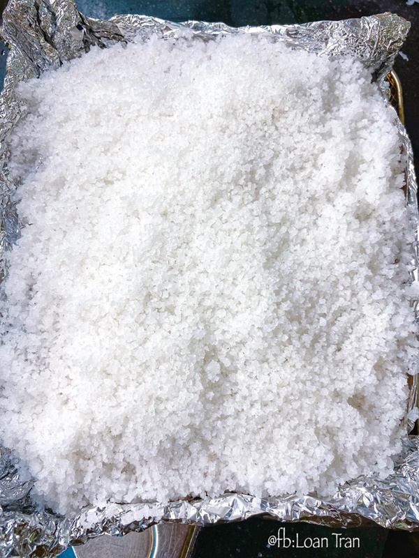 Sau đó, phủ kín muối hạt to lên bề mặt bì.