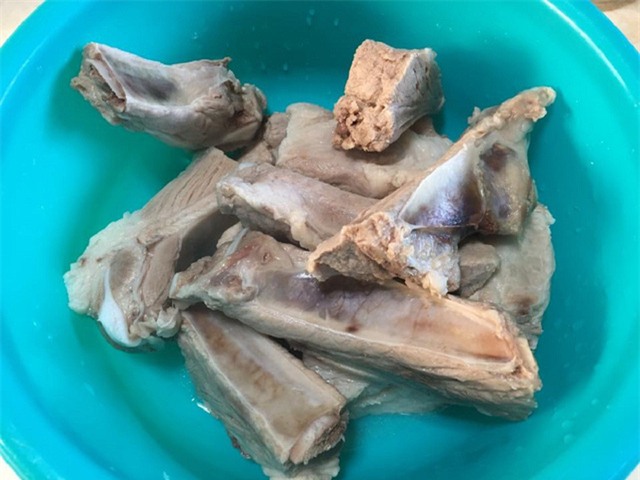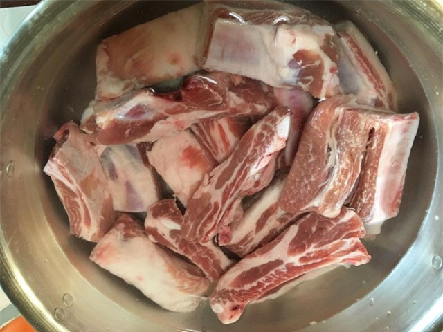 Đổ sườn ra thau rửa lại cho sạch bọt và thịt vụn.