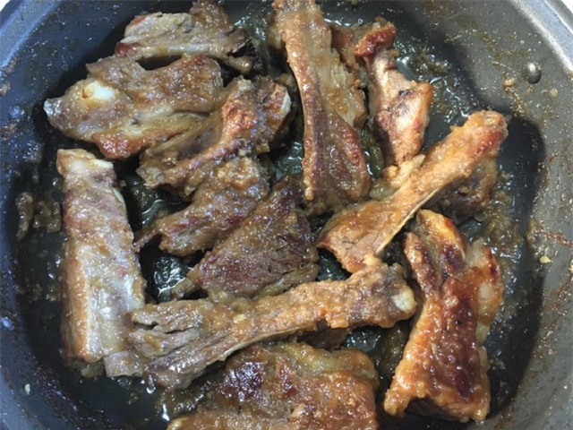 Đun đến khi nước sốt cạn hơi sền sệt, quyện dính vào sườn là đạt.