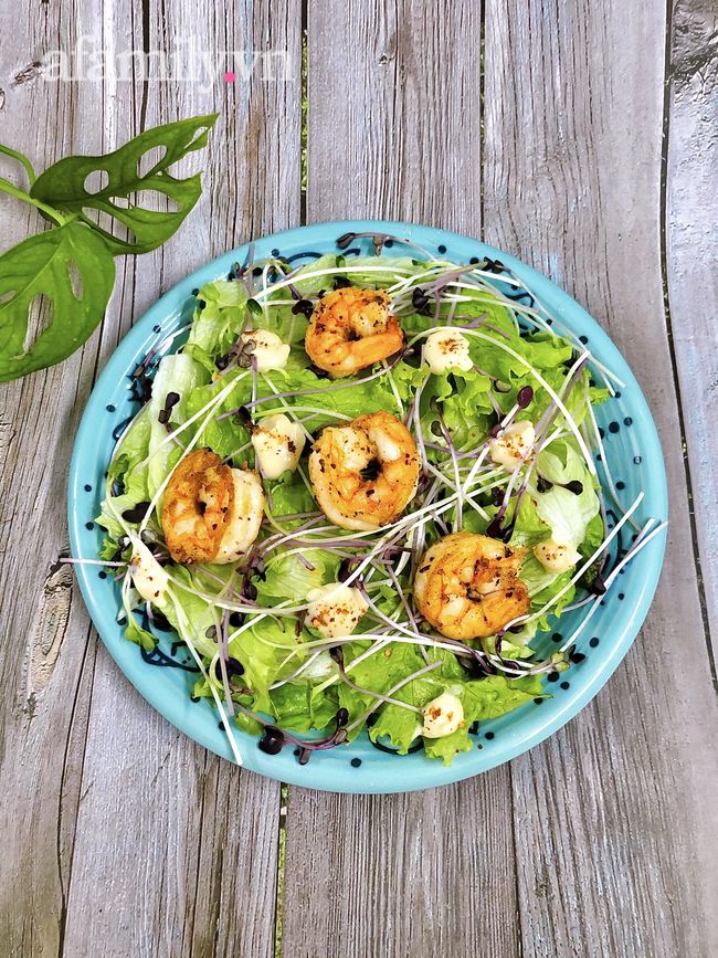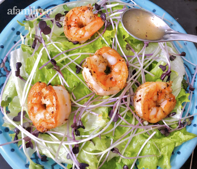 Món salad thanh mát vị chua ngọt thanh từ tắc và mật ong, tôm tươi cùng các loại xà lách cũng như rau mầm giòn mát hấp dẫn. Món salad đơn giản nhưng đầy đủ dinh dưỡng, dùng làm món ăn kiêng là vô cùng hợp lý.