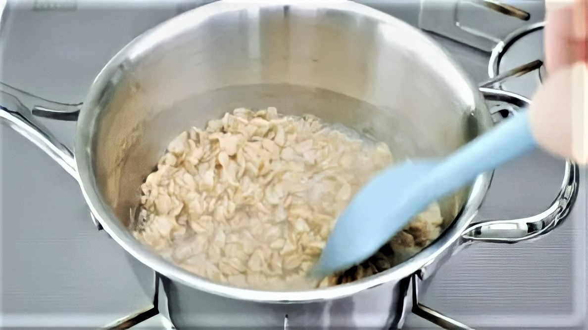 Bước 1: Đun sôi nước trên lửa lớn. Cho bột yến mạch vào khuấy đều và vặn nhỏ lửa để đun liu riu. Đặt hẹn giờ trong 10 phút. Khuấy bột yến mạch một cách định kỳ để đảm bảo bột yến mạch được chín đều.