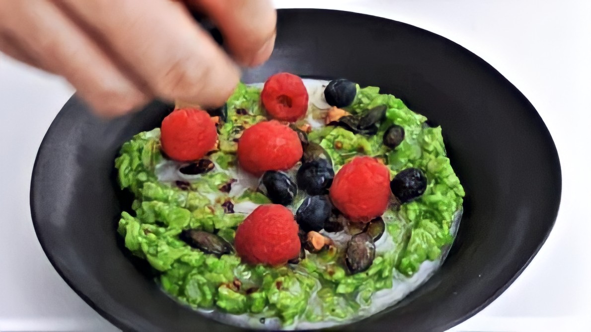Bước 4: Có thể dùng bột yến mạch matcha với các topping mặn hoặc ngọt theo ý thích của bạn.