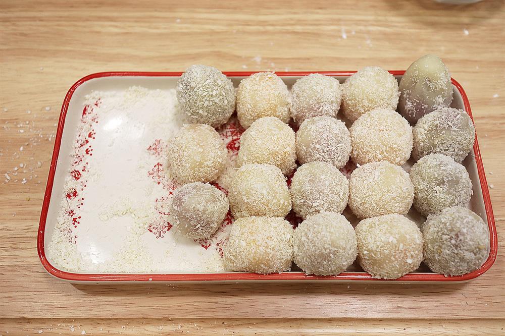13. Để không kết dính lẫn nhau, hãy lăn trong cùi dừa xay vụn, dừa xay còn có tác dụng làm tăng mùi thơm;