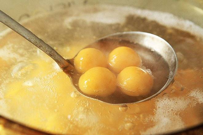 Đun sôi nửa nồi nước, cho các viên khoai lang vào, nấu đến khi chúng nổi lên. Lúc này có thể thêm đường nâu hoặc đường phèn nếu thích ăn ngọt.