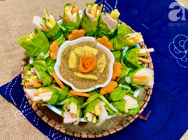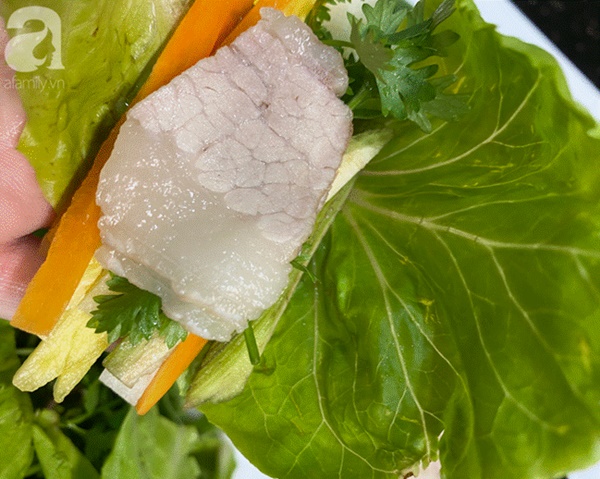 - Khi ăn, lấy cuộn rau thịt chấm cùng mắm nêm. Món này rất thích hợp với mùa nắng nóng lại bổ sung rất nhiều chất xơ và vitamin!