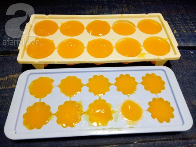 Lần lượt đổ thạch xen kẽ vào khuôn. Chờ lớp thứ 1 se mặt thì mới đổ lớp thứ 2. Cứ thế đổ xen kẽ nhau cho đến khi đầy khuôn. Để nguội rồi bảo quản trong tủ lạnh, dùng dần.