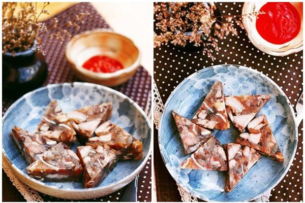 Từ lâu thịt đông là món ăn thanh mát luôn có mặt trong mâm cỗ Tết của người miền Bắc. Món ăn được làm từ tai heo, thịt chân giò (cũng có thể thêm thì gà cho thơm), bì heo, mộc nhĩ, nấm hương, hạt tiêu và xíu gia vị. Tất cả đều được ninh nhừ, sau đó vớt bì ra. Bì được cho vào thịt đông để tạo độ trong và keo cho thịt. Trước khi ăn, múc thịt đông ra bát, để vào tủ lạnh bảo quản. Khi nào thịt đông hoàn toàn thì đem úp ngược ra đĩa là được. Thịt đông ngon mềm, thanh mát mà không hề bị ngấy.