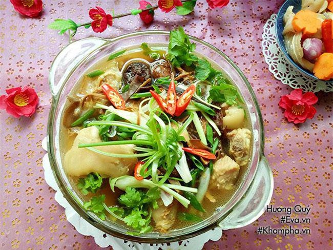 Măng khô là một loại đặc sản ở các vùng miền núi nhưng từ lâu măng khô là nguyên liệu có mặt thường xuyên trong các gia đình vào dịp Tết. Măng khô được luộc mềm, rửa sạch, xé sợi và đem nấu cùng với móng giò. Món canh vừa có mùi thơm đặc trưng của măng, mềm mềm, beo béo của móng giò nhưng không hề ngán.