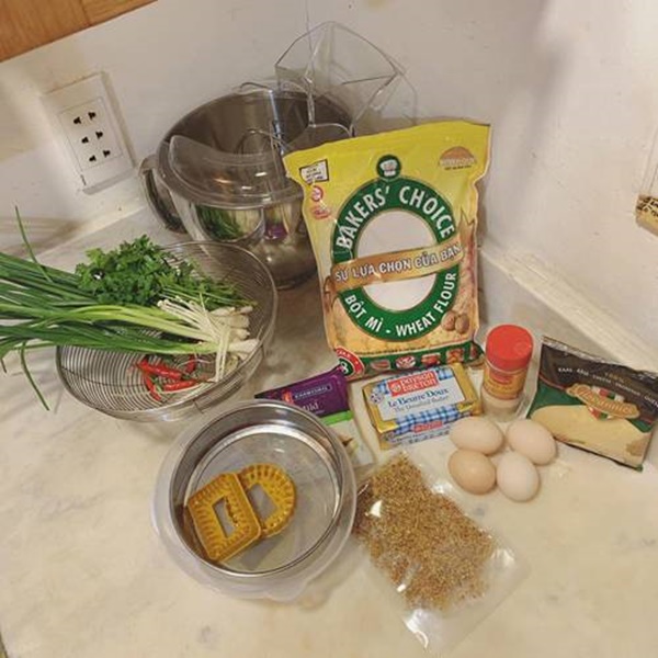 Dưới đây là cách làm bánh cookie mặn vị phô mai cheddar hành tỏi của Phan Như Thảo: