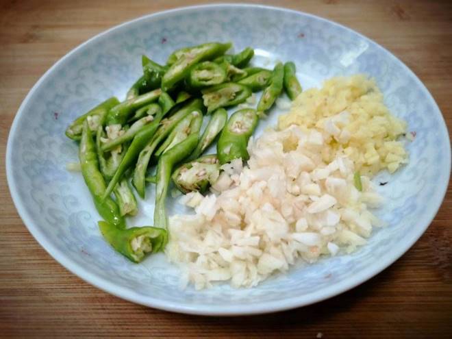 Tỏi băm nhỏ. Gừng rửa sạch gọt vỏ băm nhỏ. Ớt thái chéo. Lưu ý nếu không ăn được cay nên sử dụng ớt sừng.